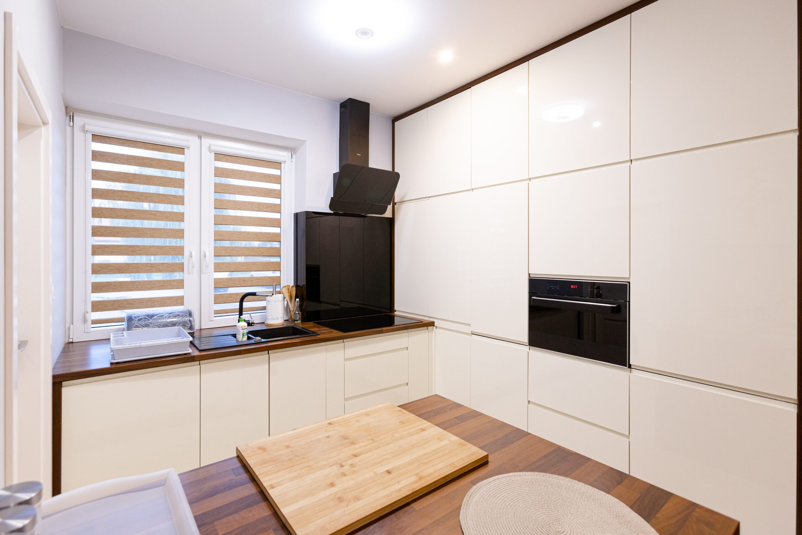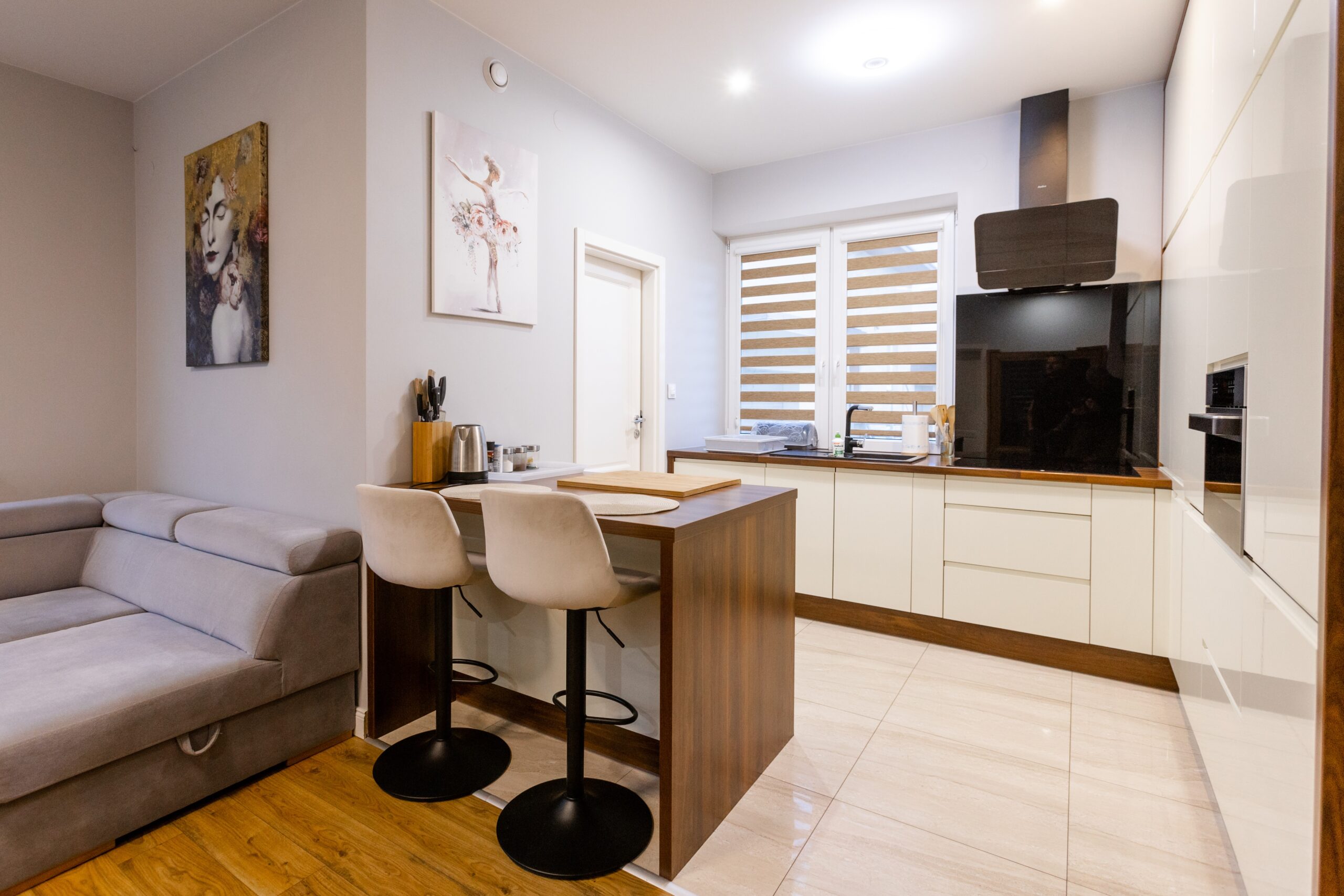 ▸ Kuchnia: w pełni wyposażona – płyta indukcyjna, piekarnik, mikrofalówka, zmywarka, lodówka, czajnik elektryczny, komplet naczyń, garnków i sztućców