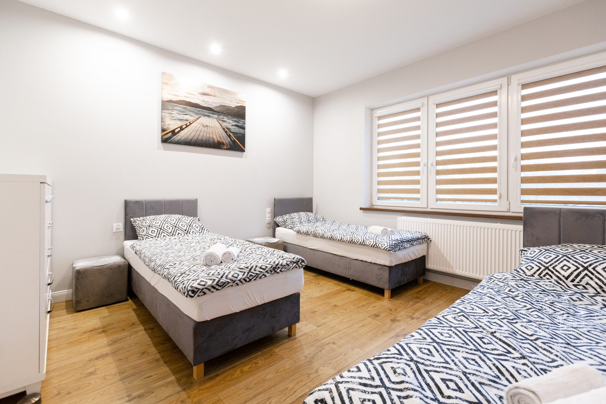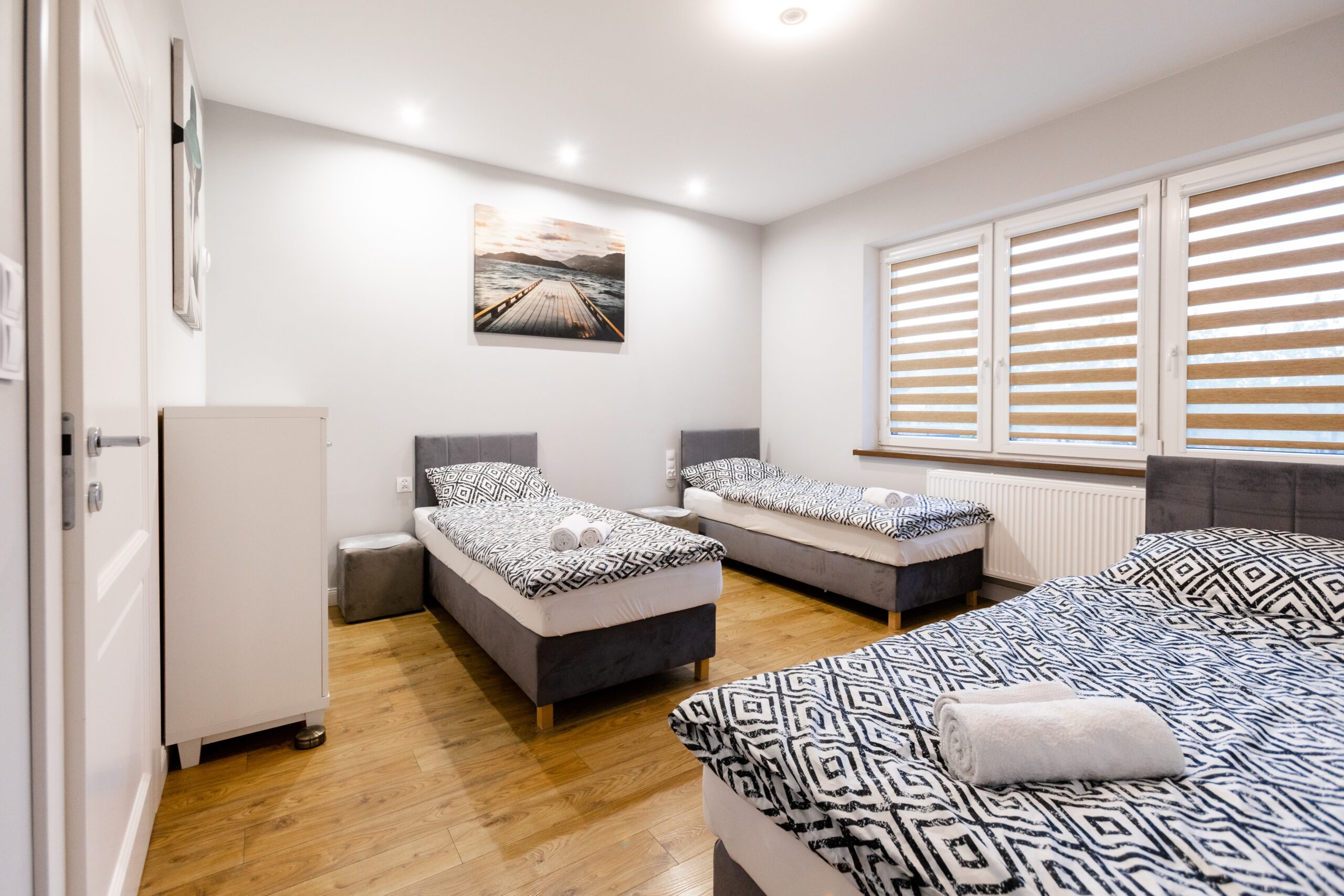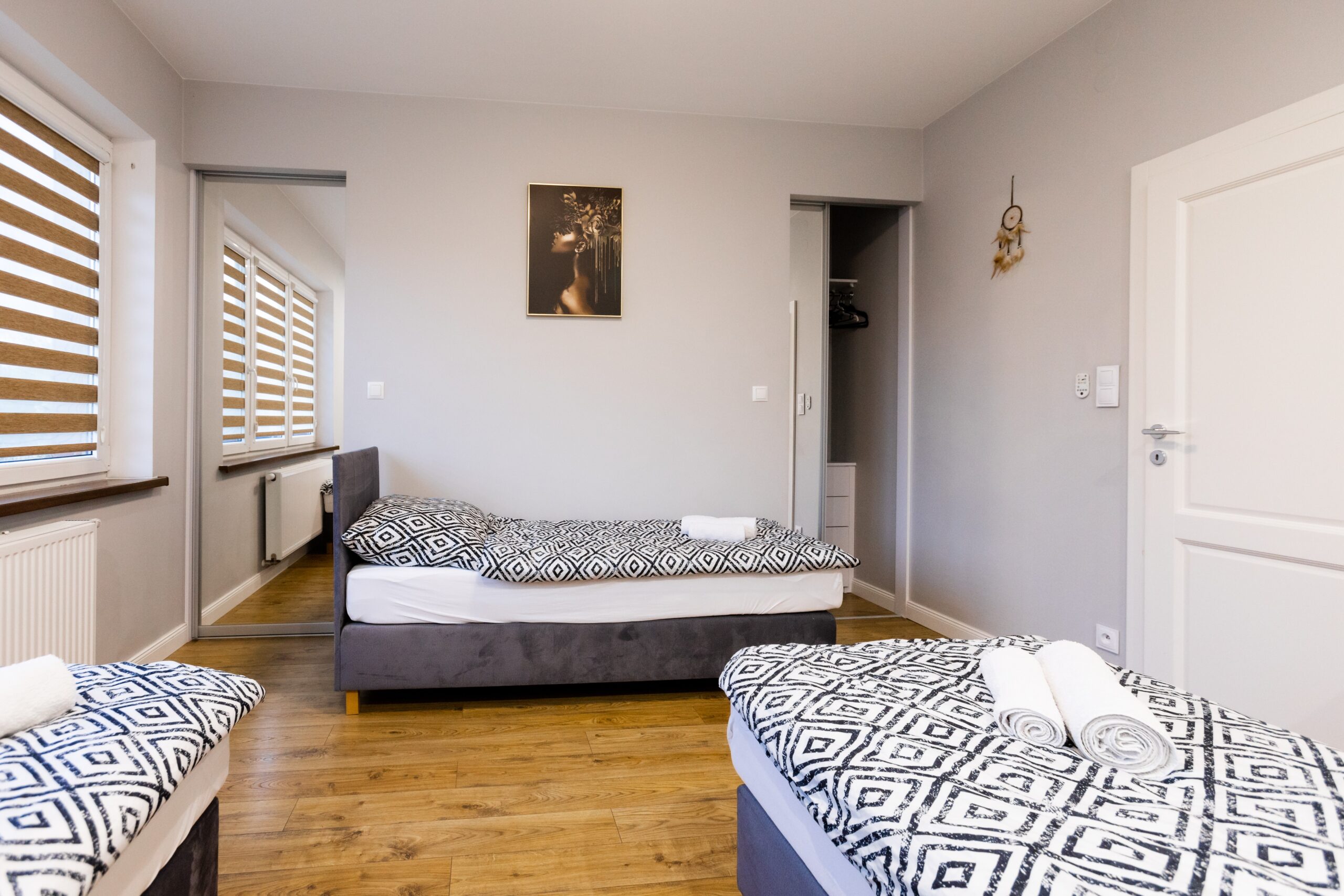 ▸ Sypialnia: 3 łóżka pojedyncze, możliwość łączenia łoże XL